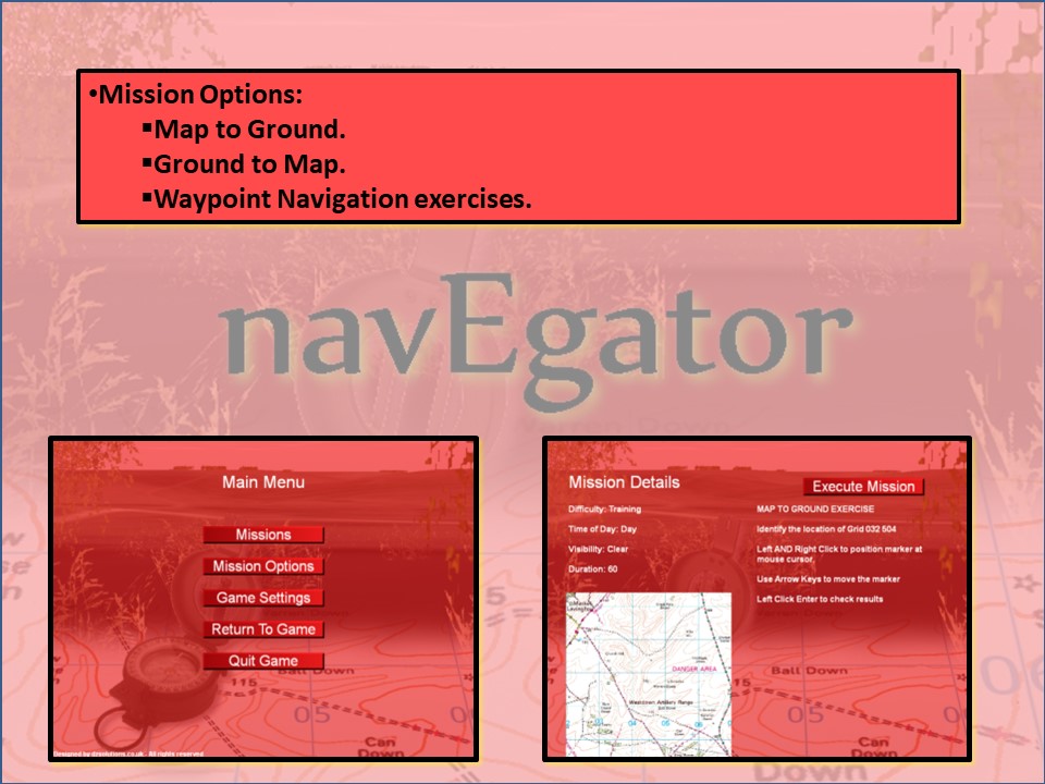 Various navigation exercises are available with a variety of difficulty levels